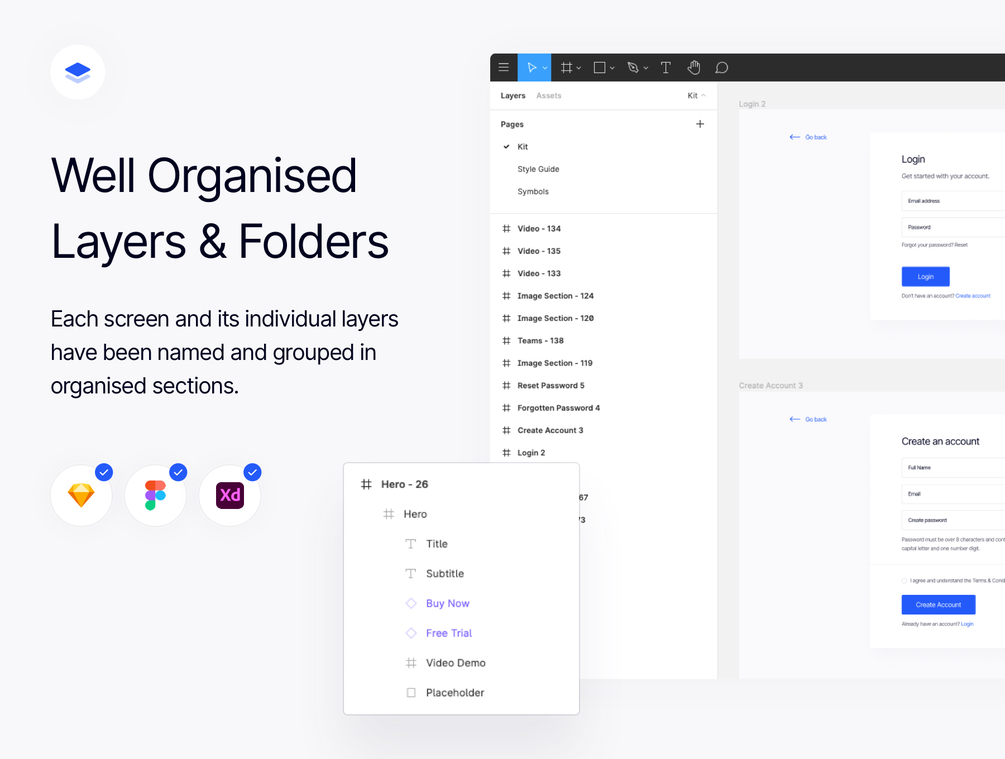 - Well organised layers and clean folder structure. Handover files with other designers or developers
