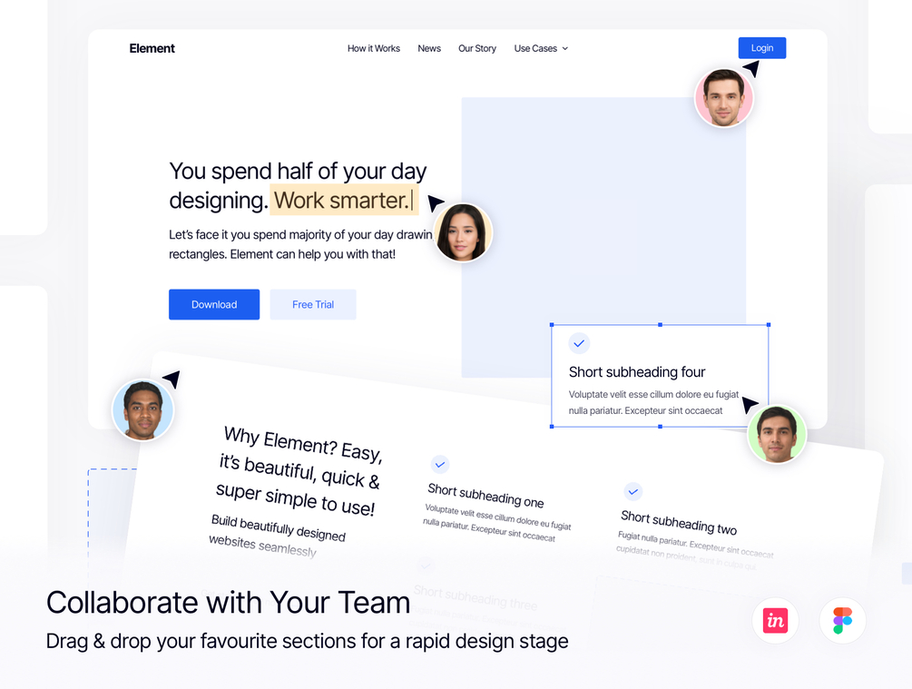 - Plug into popular tools like Figma or Invision Freehand for a collaborative design process