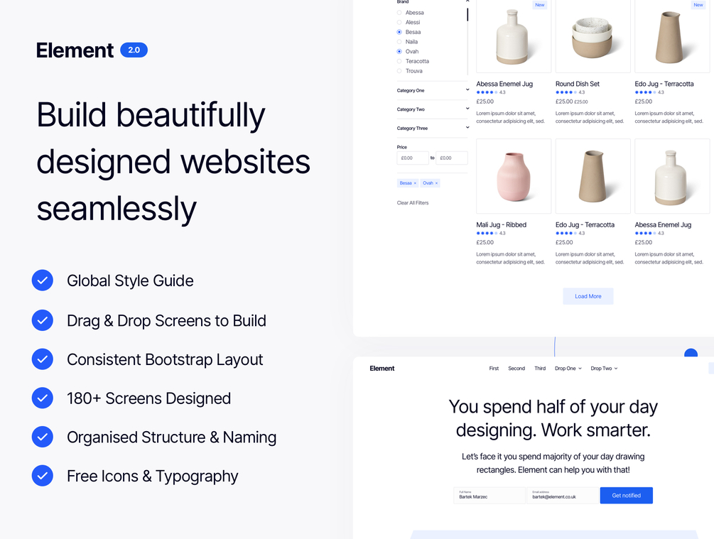 - Benefit from the consistent Bootstrap grid layout to speed up development stages