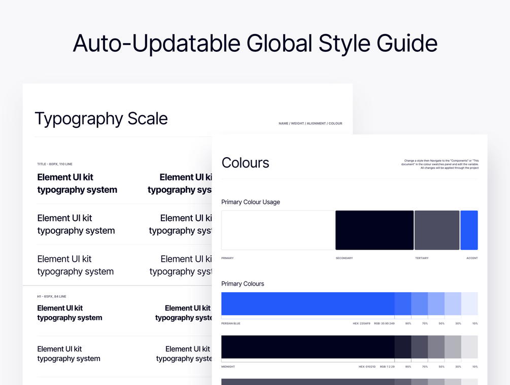 - Use the auto-updatable global style guide to push changes to all components instantly